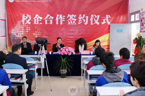 衡陽(yáng)大利集團(tuán)廖總經(jīng)理在簽約儀式上重點(diǎn)強(qiáng)調(diào)了汽修人才行情,她指出自中國(guó)加入世貿(mào)后,汽車保有量迅速超英趕日,躍居全球第二,已成為汽車消費(fèi)大國(guó)。無(wú)論是對(duì)汽車市場(chǎng)而言還是對(duì)技能型人才而言都存在著巨大的發(fā)展?jié)摿ΑD壳捌髽I(yè)技能型人才嚴(yán)重緊缺,此次衡陽(yáng)大利集團(tuán)入校主要是希望與湖南萬(wàn)通建立起良好的合作關(guān)系,以“訂單式培養(yǎng)”等多樣的形式,以穩(wěn)定的校企合作關(guān)系保證企業(yè)人才的供給。