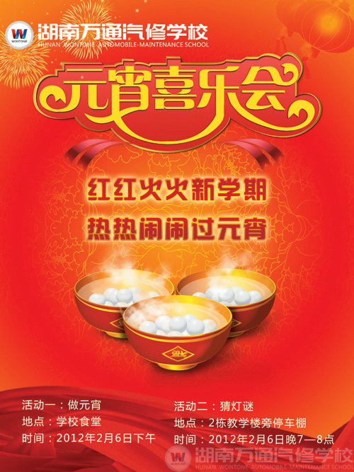 文章導讀:為了喜迎元宵佳節(jié)的到來,活躍學校氛圍,湖南萬通汽車學校將于2月6日推出元宵喜樂會,誠邀廣大師生及家長前來參加。