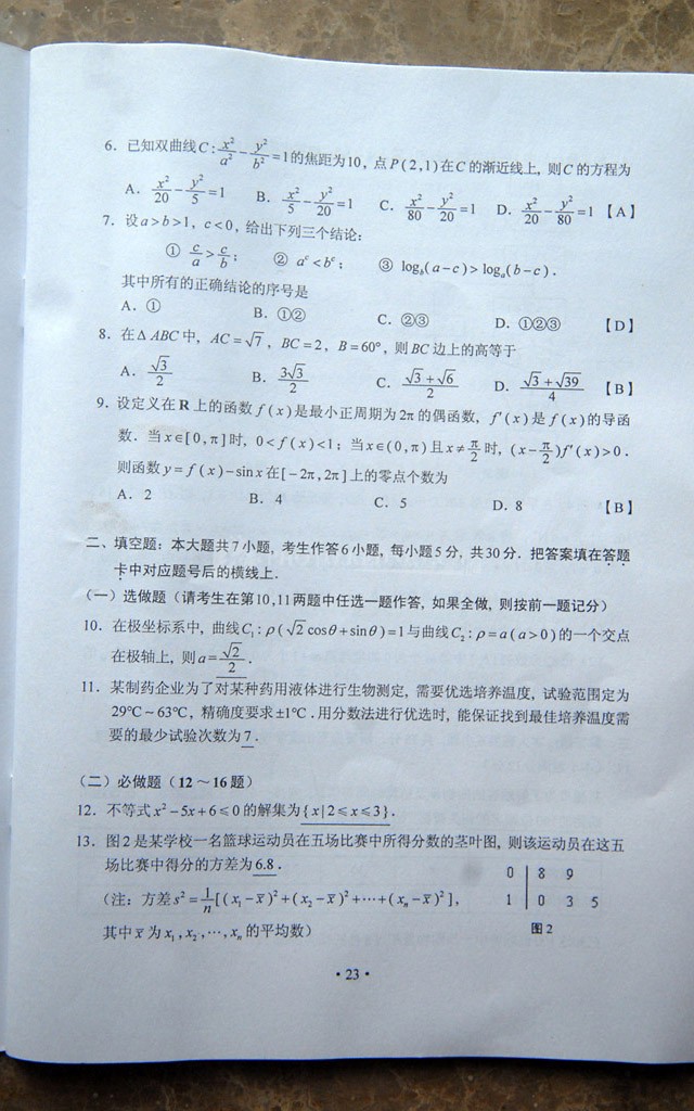 2012年湖南高考文科數(shù)學答案