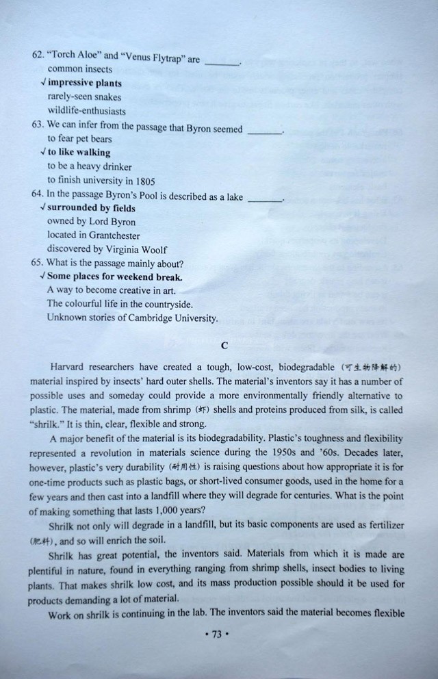 2012年湖南高考英語答案