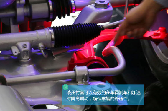 雪鐵龍C5的前橋采用“麥弗遜式獨(dú)立懸架”,螺旋彈簧與減振器組合在一起,結(jié)構(gòu)比較成熟。不過(guò)在這樣的前橋結(jié)構(gòu)中雪鐵龍加入了自己的特色設(shè)計(jì)——液壓襯套。這個(gè)內(nèi)部充滿特殊液體的襯套可以有效地隔離震動(dòng)確保車輛的舒適性。