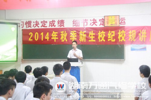 作為汽修職業(yè)教育的領航者,國家緊缺型汽修人才培養(yǎng)基地,湖南萬通汽修學校不僅注重學生專業(yè)技能的培養(yǎng),還開展了以專業(yè)教育、校規(guī)校紀教育、法制教育、軍訓、晨訓和素質(zhì)拓展訓練為主要內(nèi)容的“三教三訓”系列活動。其中,校規(guī)校紀教育就是學校教育工作的重要組成部分。