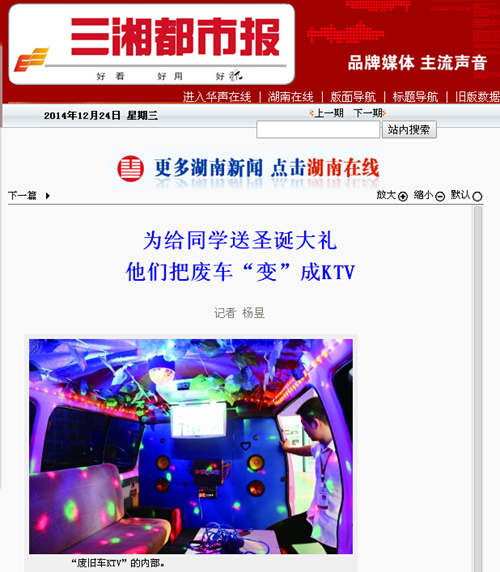 想出造“移動KTV”這個點子的是湖南萬通學(xué)子陳維,他是一名唱歌發(fā)燒友。他說:“在外唱一場歌費用高不說,還不能隨時就唱,我想要是有一個自己的KTV就好了。”沒想到此想法一出,立刻得到其他幾位同學(xué)以及老師的支持。由湖南萬通出資8000余元,耗時近2個月后,就這樣,“移動KTV”從想法變成了現(xiàn)實。