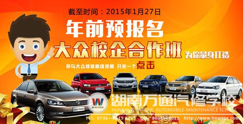 湖南萬通汽修學(xué)校新開大眾校企合作班啦!年前提前預(yù)報名,有驚喜在等著你哦,還在等什么,趕緊行動吧!小聲的告訴你,年后會漲學(xué)費(fèi)哦!