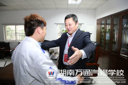 4月21日,有幾位學生在湖南萬通汽修學校校長辦公室和副校長辦公室緊張、徘徊。他們有一個別樣的想法,想與校長和副校長來一次“力量”的擁抱。