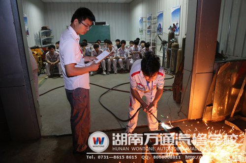火花四濺的氣割實(shí)操,余老師正在認(rèn)真仔細(xì)的評(píng)判