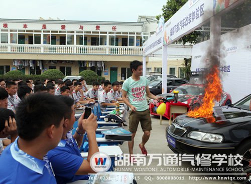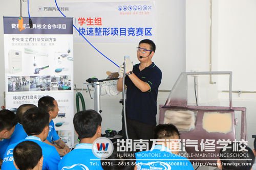開幕式結束后,各家企業(yè)紛紛開始自己的技術展示和講座。操場上,多家汽車公司帶來新車展示,其中成都飛凱公司展區(qū)更有改裝車,令人眼前一亮。深圳奔瑞汽車用品公司的展臺前坐滿了參觀的學子,奔瑞展示的鍍晶、美容真皮修復讓學子們大呼過癮。作為一個汽車后服務品牌,奔瑞對高素質和高技能的人才的需求非常大,萬通大量的實踐操作使得學生的汽修技能非常扎實,攜手奔瑞可謂雙贏。隨著車載互聯(lián)網技術的不斷發(fā)展,汽車診斷及維修的智能化將是未來的發(fā)展趨勢,元征科技與萬通汽修教育聯(lián)手,致力于培養(yǎng)基于互聯(lián)網的新一代智能化汽車診斷維修人才。元征科技還播放了一部關于車載新技術的微電影,使現(xiàn)場觀眾耳目一新。上海費斯托工具系統(tǒng)技術有限公司帶來了無塵干磨技術講座,現(xiàn)場示范新技術工具的運用,并邀請學子們體驗。廣州佳尼士的最新貼膜工藝也令不少人駐足,不少學子還展示了自己的貼膜技術。山東星科智能科技有限公司對此次講座很是重視,不僅千里自帶設備裝修展區(qū),還推出多項互動活動,引來大片學子和觀眾。山東星科與萬通汽修教育合作多年,還建立了首個汽車智能化示范實訓中心,對于這次講座,星科張總表示準備打造全新的汽車數(shù)字化在線實訓系統(tǒng)并配套數(shù)字化教材庫,以理實一體教學為基礎,線下操作與線上學習相結合,助力萬通學子早日成才。