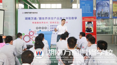 獨具匠心的專家講座模式再度在湖南萬通開啟啦!7月25日,在我校汽車美容實訓中心,又迎來了一場別有趣味的汽車美容產(chǎn)品施工體驗教學講座。本次受邀專家乃是膜世界技術(shù)兼營銷總監(jiān)文巧學,在湖南這一行業(yè)中,此人可是大名鼎鼎矣!