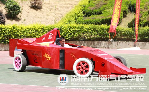 每一個(gè)愛(ài)車的的有志青年都有一個(gè)賽車夢(mèng),湖南萬(wàn)通的學(xué)子們亦是如此。一是為了慶祝汽車文化節(jié)的盛大開幕,二是為了圓自己心中的賽車夢(mèng),5名湖南萬(wàn)通學(xué)子雄心壯志,提出想用自己所學(xué)的汽修技能,手工改裝出一輛頂級(jí)F1賽車,“現(xiàn)在雖沒(méi)機(jī)會(huì)能親身體驗(yàn)到F1,但我們能自己打造自己的愛(ài)車!”學(xué)子朱志鵬興致昂揚(yáng)的說(shuō)道。