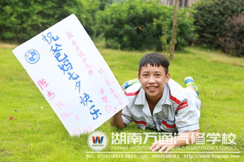“爸爸媽媽,節(jié)日快樂!我在湖南萬通學(xué)好汽修技術(shù),將來開寶馬來接你們暢游世界!” ——學(xué)子陳杰