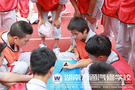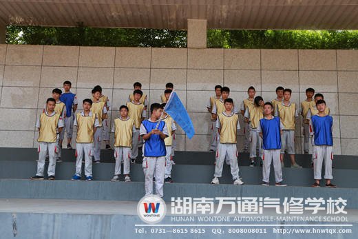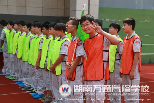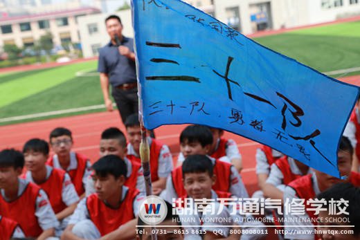 思維敏捷的湖南萬通汽修學(xué)校的學(xué)子們,紛紛出大招,先是選出隊長,其余“干部”也紛紛自薦,委以重任,再分工合作。才藝好的進(jìn)行隊歌商討與隊形訓(xùn)練,文筆好的就想隊名和口號,最特別的就是有個學(xué)子突出奇想,用廢棄報紙做出了旗桿,配上那面鮮艷的隊旗是再合適不過了!好點子,當(dāng)然是人人效仿了,其他兩隊也不甘示弱的行動起來!