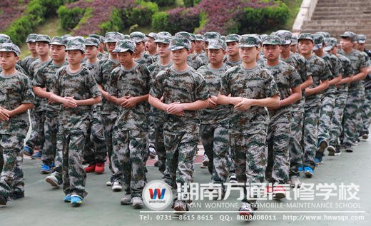 “1、2、3、4····向右轉(zhuǎn)!”在湖南萬通汽修學(xué)校,一陣陣青春熱血沸騰的聲音響徹著整個(gè)校園,因?yàn)椋倚5能娪?xùn)正進(jìn)行得熱火朝天!從基本的站姿、稍息、立正,到四面轉(zhuǎn)、齊步走、跑步前進(jìn)、踢正步···;從內(nèi)務(wù)整理到晚間連隊(duì)相互拉歌···;青春的號(hào)角聲愈響愈烈,從迎接初升的太陽(yáng),一直到夜幕降臨。
