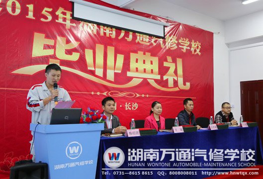 10月30日這天里,在湖南萬通汽修學(xué)校黃興校區(qū),汽車檢測與運營工程師專業(yè)4班的36名學(xué)子一同齊聚,參加屬于他們班級的畢業(yè)典禮。而到場的學(xué)校教學(xué)部主管葉彬勇、創(chuàng)就業(yè)指導(dǎo)中心主管甘瓊、考試考證中心主管彭德榮等人,除外之外,還有著那么一群特殊的觀禮者,那就是來自汽運2班的全班同學(xué),共同見證著感人的那一刻。本次典禮共包括介紹到會嘉賓、觀看汽檢四班班級畢業(yè)影集、學(xué)生代表發(fā)言、各部門負(fù)責(zé)人講話、感恩曾送紀(jì)念品、班主任寄語、合影留戀等環(huán)節(jié)。