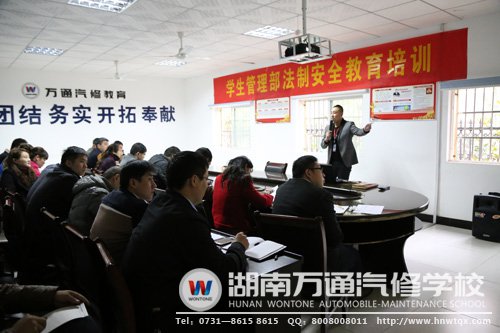 了解湖南萬通汽修學(xué)校的朋友們會知道,除了一類專業(yè)的汽修技術(shù)職業(yè)教育外,還將會定時看展“三教三訓(xùn)”素質(zhì)教育,其中便包括了安全法制教育。而在11月21日的會議室上,出現(xiàn)了那么一幫“與眾不同”的學(xué)生,他們便是每日不辭操勞、奮戰(zhàn)在一線的班主任群體。為了進(jìn)一步加強教師隊伍建設(shè),提高依法治校水平,本次的培訓(xùn)內(nèi)容便是安全法制教育。