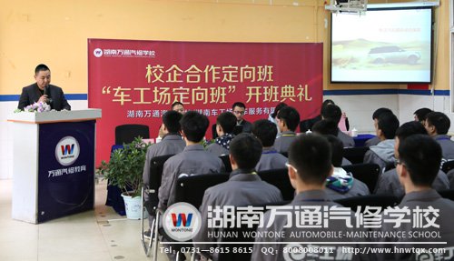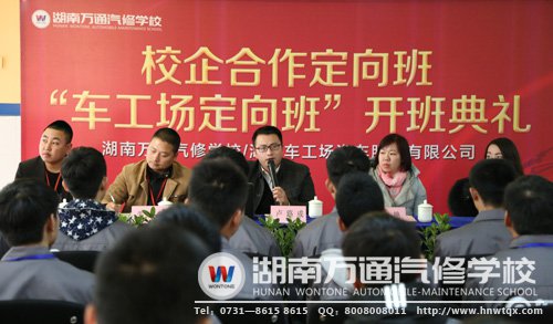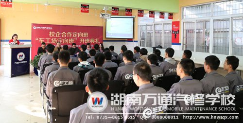 “未來不僅需要憧憬,更需要揮灑汗水,付諸努力!在湖南萬通汽修學(xué)校,經(jīng)由兩個(gè)人月余的籌備工作、組織宣講、層層選拔后,30位精英學(xué)子一起“入駐”為首屆車工場(chǎng)校企合作定向班成員。在11月26日感恩節(jié)這一美好的日子,我校與湖南車工場(chǎng)汽車服務(wù)有限公司共同舉行了首屆定向班開班儀式,翻開校企合作新的美好篇章。