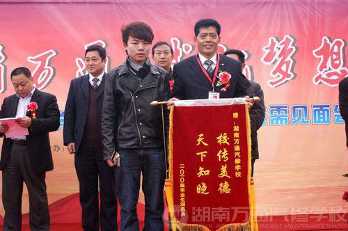 已榮升長沙市某美容店技術(shù)總監(jiān)的湖南萬通畢業(yè)學(xué)子胡先生為母校送錦旗