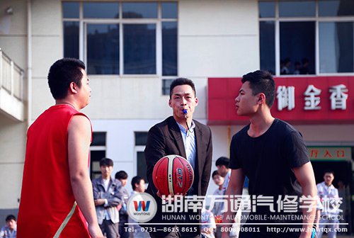 在裁判員阮老師宣讀完裁判誓詞后,湖南萬通汽修學(xué)校師生對(duì)決賽正式開始,雙方身披“戰(zhàn)袍”,摩拳擦掌,一場(chǎng)精彩紛呈的籃球競(jìng)技由此浩蕩的撲面而來!在暖暖春陽之下,雖是熱身友誼賽,但師生雙方彼此毫不謙讓!在上半場(chǎng)中,教師們憑借著過人的技能與無縫對(duì)接的默契配合度頻頻得分,充分地展現(xiàn)出教師們上得講堂,下得球場(chǎng)的颯爽英姿!