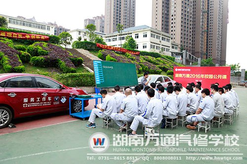 天下之大,無(wú)奇不有。小編見(jiàn)過(guò)各種各樣奇特的人和事,在籃球場(chǎng)公開(kāi)上課的還真是第一次見(jiàn)。沒(méi)錯(cuò),小編指的就是5月4日早上,在湖南萬(wàn)通汽修學(xué)校的籃球場(chǎng),上的一堂公開(kāi)實(shí)訓(xùn)課!五一勞動(dòng)節(jié)過(guò)后,長(zhǎng)沙逐漸升溫,室外炎熱。盡管天氣悶曬,但是一點(diǎn)都不妨礙汽車(chē)維修與運(yùn)營(yíng)工程師專業(yè)16班,校園公開(kāi)課的進(jìn)行。同學(xué)們整整齊齊的坐好,一個(gè)個(gè)精神抖擻,等候?qū)W校汽車(chē)大師馬老師來(lái)上課。