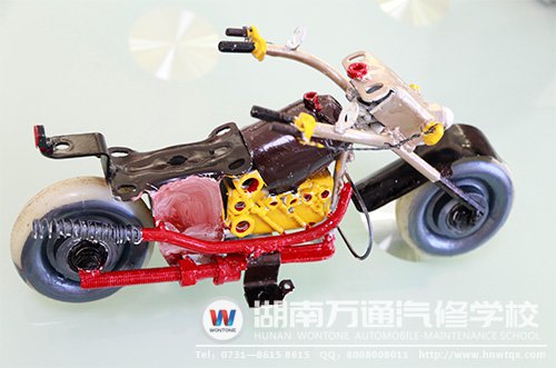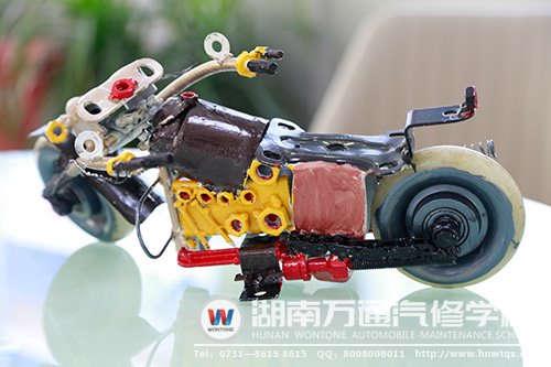 田田同學還有很高的創(chuàng)新動手能力,在學校學習技能一段時間過后。他利用課余時間,將一些汽車廢件,經(jīng)過焊接、噴涂,加上自己在學校學到汽修技能,把這堆廢氣的汽車材料“變廢為寶”,改造成了威風凜凜的摩托車,簡直不要太拉風!不過他十分謙虛,透露說這只是他的一個小小開始,之后他計劃改裝一臺汽車,一步一步做的更好,學校領導和老師知道他的想法后,非常支持,并且表揚了歐陽田田的不斷創(chuàng)新的精神,提倡大家向他學習!
