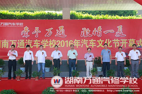 汽車文化節(jié),是湖南萬通汽修學(xué)校獨(dú)具特色,集專業(yè)教育、學(xué)生技能比拼、文體活動(dòng)為一體的大型校園活動(dòng),自舉辦以來,受到每一屆學(xué)生的歡迎。7月23日上午9點(diǎn),湖南萬通2016年汽車文化節(jié)開幕式在學(xué)校操場舉行,湖南省民辦教育協(xié)會(huì)副會(huì)長羅安民、長沙理工大學(xué)教育學(xué)院院長顏鮮明、湖南廣播電視大學(xué)直屬學(xué)院院長許旭、湖南省民辦教育協(xié)會(huì)副秘書長章洪波、湖南省汽車商會(huì)副秘書長肖海、長沙賓利汽車有限公司服務(wù)經(jīng)理陳杰、學(xué)校校長潘太煌以及校長助理韓明與全校師生一起出席了本次文化節(jié)開幕式,共同領(lǐng)略了一場汽車文化的饕餮盛宴。
