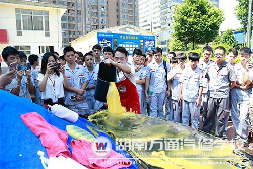 為了讓萬(wàn)通學(xué)子更直觀地感受到汽車美容的先進(jìn)理念和效果,湖南萬(wàn)通汽修學(xué)校在7月23日汽車文化節(jié)上組織了一場(chǎng)別開(kāi)生面的教學(xué)體驗(yàn)課,作為汽車文化節(jié)體驗(yàn)課程的首演,長(zhǎng)沙車域汽車用品公司黃總帶領(lǐng)著他的精英團(tuán)隊(duì),為大家?guī)?lái)汽車美容熱門盈利項(xiàng)目與汽車前沿電子產(chǎn)品實(shí)操體驗(yàn),上演著別開(kāi)生面、扣人心弦、精彩絕倫的一幕幕,其震撼場(chǎng)景堪比電影大片。
