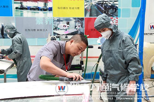 湖南萬(wàn)通汽修學(xué)校為了適應(yīng)現(xiàn)代汽車行業(yè)發(fā)展,培養(yǎng)更多具有專業(yè)汽修技能的復(fù)合型人才,學(xué)校緊密貼合市場(chǎng)所需,邀請(qǐng)專家、行業(yè)大師共同研發(fā)湖南萬(wàn)通金領(lǐng)專業(yè)——汽車鈑噴美全能技師專業(yè)。據(jù)悉,汽車鈑噴美全能技師專業(yè)是萬(wàn)通汽修學(xué)校金領(lǐng)專業(yè)之一,主要包括汽車美容裝潢、汽車鈑金整形專業(yè)、汽車美容快修專業(yè)和汽車噴涂快修專業(yè)等課程設(shè)置。意在培養(yǎng)面向現(xiàn)代汽車美容、裝飾裝潢方向復(fù)合型全能技術(shù)人才。