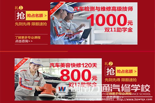 報(bào)讀湖南萬(wàn)通汽修學(xué)校汽車(chē)檢測(cè)與維修高級(jí)技師專(zhuān)業(yè),可以享受企業(yè)助學(xué)金1000元;報(bào)讀汽車(chē)美容快修創(chuàng)業(yè)專(zhuān)業(yè)(120天),可以享受企業(yè)助學(xué)金800元;報(bào)讀汽車(chē)美容裝潢專(zhuān)業(yè)(80天)可以享受500元企業(yè)助學(xué)金;報(bào)讀汽車(chē)機(jī)電專(zhuān)修專(zhuān)業(yè)可以享受500元的企業(yè)助學(xué)金,報(bào)讀汽車(chē)維修與運(yùn)營(yíng)工程師專(zhuān)業(yè)可以享受800元企業(yè)助學(xué)金,直接在學(xué)費(fèi)里減免。