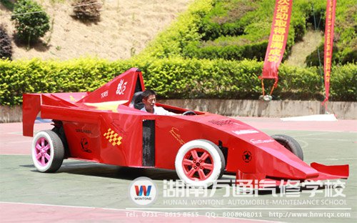 小編通過走訪湖南萬通汽修學(xué)校得知,湖南萬通就是汽車改裝培養(yǎng)學(xué)校中最專業(yè)的,也是最值得信賴的。在2014年的夏天,四名90后學(xué)生歷時兩個月把報廢桑塔納改裝成“法拉利”,除輪轂外都是舊貨,改裝“法拉利”現(xiàn)出江湖后,引起了社會眾界關(guān)注;2015年,5名湖南萬通學(xué)子雄心壯志,整整花了兩個月余的時間,除了平時的汽修課程,課余時光幾乎都花在了改裝F1賽車上,從模型創(chuàng)意到機電、鈑金、噴漆、美容,路程艱辛萬分,成功手工改裝出一輛頂級F1賽車;2016年,又在湖南萬通見到一件新作品——名為“鐵甲雙頭艦車”的“雙頭改裝車”,創(chuàng)意新穎,而“雙頭車”的設(shè)計制造是由學(xué)校老師和學(xué)生共同完成。這些改裝成果獲得業(yè)界改裝專家的高度認可,曾引起諸多媒體的關(guān)注,萬通學(xué)子也因此成為媒體的“新寵”。