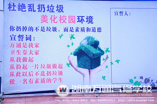 湖南萬通汽修學校此次凈化環(huán)境、美化校園的活動,是一次讓每位學生在宣誓中牢記,在勞動中感受快樂的活動。通過此次活動,提高了同學們的愛校意識與責任感,同學們通過實踐深刻的體會到杜絕亂扔垃圾,美化校園環(huán)境!你扔掉的不是垃圾,而是素質(zhì)。并且增強了同學們的勞動意識,美化了校園環(huán)境,展現(xiàn)了同學們良好的精神面貌。