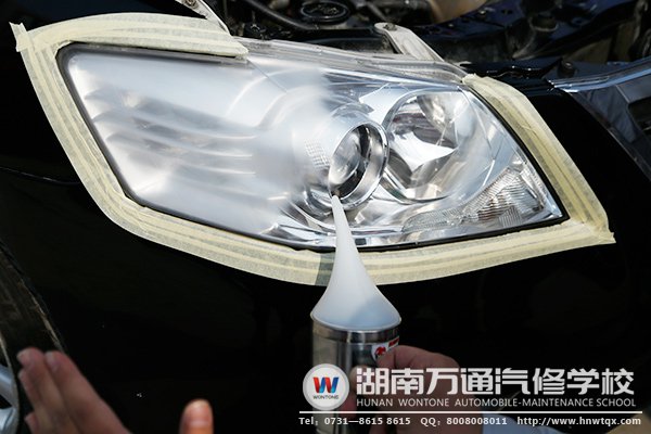 最后,用高速拋光機倒少許的微晶拋光釉進行拋光,用干凈毛巾擦拭大燈,檢查大燈是否透徹光亮。