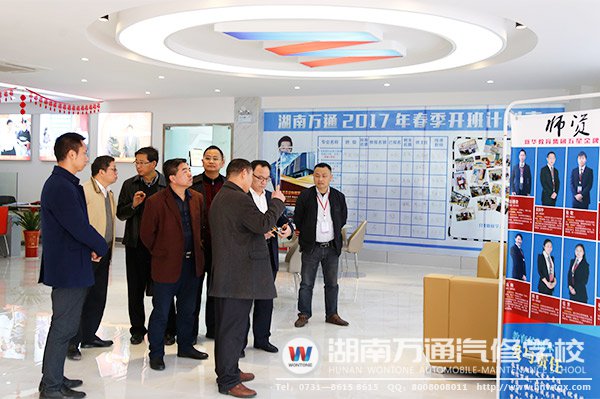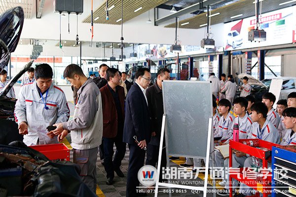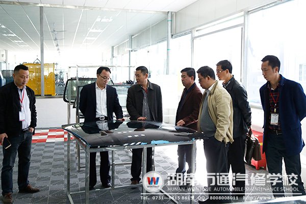 在學(xué)校潘校長(zhǎng)的陪同下,彭校長(zhǎng)一行參觀了我校的汽車實(shí)訓(xùn)中心、奔寶高檔車實(shí)訓(xùn)中心、汽車維修中心、汽車美容實(shí)訓(xùn)中心以及湖南萬(wàn)通學(xué)子改裝作品等。彭校長(zhǎng)一行對(duì)湖南萬(wàn)通理實(shí)一體化的教學(xué)模式、學(xué)校設(shè)施設(shè)備、6S規(guī)范操作等表示高度贊賞。