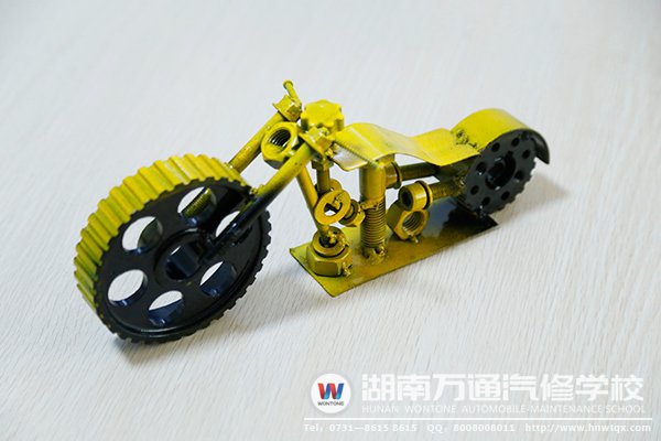 在湖南萬(wàn)通汽檢17班與汽運(yùn)25班的學(xué)子們一雙雙巧手的傾心打造下,原本樸素單調(diào)的廢棄汽車(chē)零件實(shí)現(xiàn)“大變身”,化身氣派十足的“神龍小霸王”,活靈活現(xiàn)的“個(gè)性小摩托”……,令人不得不為他們的“手藝”叫絕。