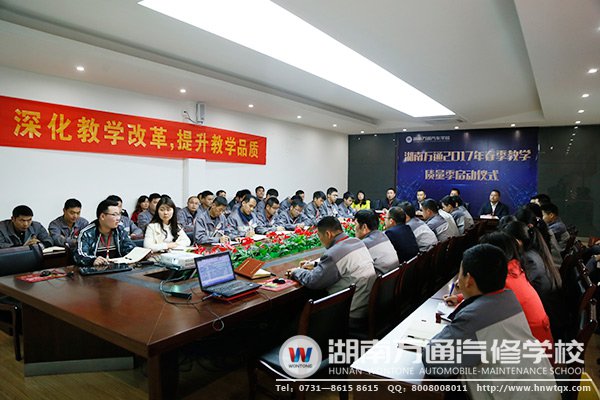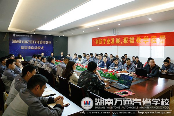 為進(jìn)一步完善學(xué)校教學(xué)管理,創(chuàng)新專業(yè)發(fā)展,狠抓教學(xué)質(zhì)量,深化教學(xué)改革,加強(qiáng)教學(xué)常規(guī)管理,促進(jìn)學(xué)校教育教學(xué)質(zhì)量的穩(wěn)步提高,創(chuàng)建優(yōu)良的教風(fēng)、學(xué)風(fēng)和校風(fēng),近日,湖南萬通汽修培訓(xùn)學(xué)校教務(wù)處、學(xué)生處全體教職員工齊聚一堂,隆重舉行2017年春季教學(xué)質(zhì)量季啟動(dòng)儀式。