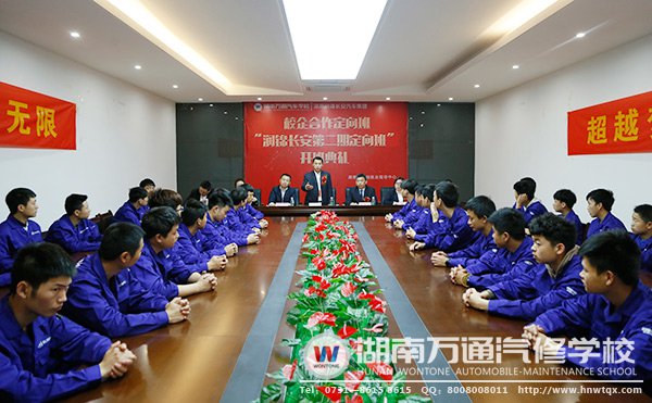 潤錦長安整車事業(yè)部總經(jīng)理劉厚學(xué)、總經(jīng)理助理李艷、潤錦整車事業(yè)部綜合主管賀秋麗、湖南萬通校長潘太煌及校方相關(guān)領(lǐng)導(dǎo)、以及潤錦長安班第二期全部學(xué)生等出席了此次開班典禮。