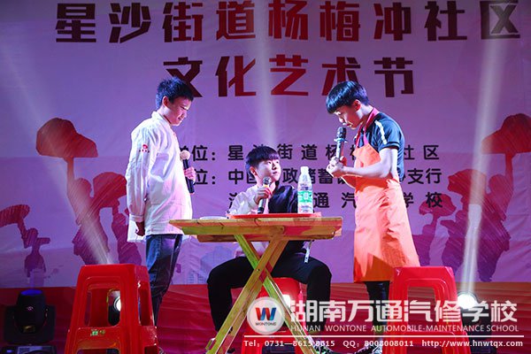 文藝匯演現(xiàn)場(chǎng),舞蹈、小品、樂(lè)器演奏、歌曲等節(jié)目,形式多樣,二十余個(gè)節(jié)目,一一精彩呈現(xiàn)。其中,湖南萬(wàn)通汽修學(xué)校的學(xué)生們?yōu)樯鐓^(qū)的老人們帶來(lái)了舞蹈表演、小品《吃面》、朗誦表演等精彩節(jié)目。同學(xué)們自編自導(dǎo)的節(jié)目,情節(jié)貼近生活,表演專(zhuān)業(yè)生動(dòng),贏得陣陣掌聲,現(xiàn)場(chǎng)氣氛一片歡騰!
