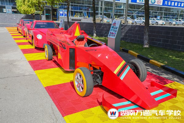 五月,湖南萬通學(xué)子費(fèi)時2個月完成了兩臺F1賽車改裝。從整車漆面打磨、整車膩?zhàn)邮┩康阶伟惭b、輪轂改裝,全由學(xué)子親自操刀。