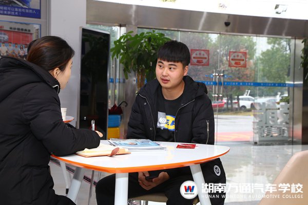 來到湖南萬通后,嚴(yán)海濤在咨詢老師的帶領(lǐng)下參觀了校園,并在美容實(shí)訓(xùn)中心上了一堂體驗(yàn)。結(jié)束后,他果斷地交了學(xué)費(fèi)、報(bào)了名,他說:“我是在抖音上看到湖南萬通的,后來又在網(wǎng)上做了同類汽車院校的對比。今天上了體驗(yàn)課后,我知道我一定能在這里學(xué)到技術(shù)。”