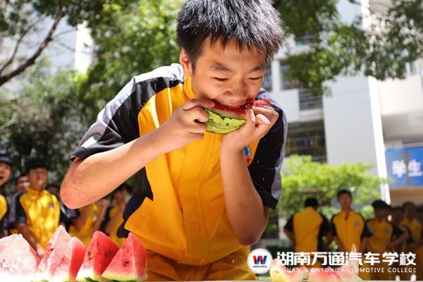 作為我校的特色活動(dòng),每到盛夏,全校師生最期待的吃西瓜比賽也如期而至。兩班相約對(duì)戰(zhàn),選出本班10名吃瓜“大嘴”,等量西瓜,先吃完團(tuán)隊(duì)取勝???,在聲聲加油吶喊中,新能源10班以絕對(duì)優(yōu)勢(shì)贏得了本場(chǎng)比賽。“我們班的同學(xué)太斯文啦!”張同學(xué)加油時(shí)最積極,比賽結(jié)束后,一副“應(yīng)該我來”的懊悔……