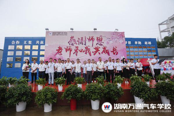 當歌聲響起,湖南萬通汽車學校學生為老師們送上了最特別的節(jié)日祝福《謝謝你,因為有你!》感恩手語舞。