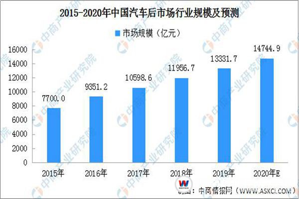 隨著汽車保有量的不斷擴大,汽車年齡不斷增加,“車齡+保有量”雙效驅(qū)動汽車后市場高速發(fā)展。再加上我國汽車制造業(yè)逐漸走向成熟,耐用性和汽車質(zhì)量的改善也不斷延長了車輛平均生命周期,中國汽車后市場規(guī)模將不斷擴大。2019年,我國汽車后市場規(guī)模超13330億元,預計2020年市場規(guī)模將擴大至14745億元。