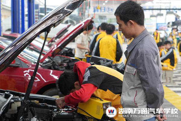 湖南萬通汽車學校學生正在上實訓技能課