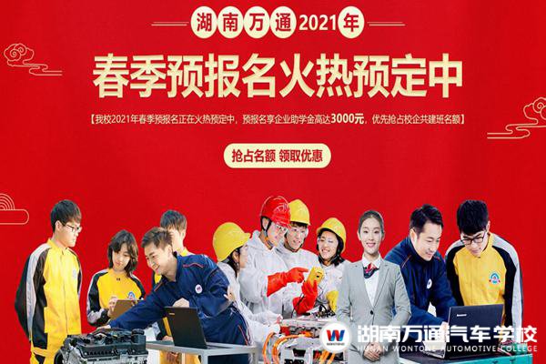 湖南萬通汽車學校2021年春季招生已經(jīng)正式啟動,學校在2021年1月1日前報名仍可享受2020年原學費,再加上名企共建班名額有限。如果搶到名企共建班的名額,不僅有企業(yè)助學金,而且入學即簽訂就業(yè)協(xié)議,畢業(yè)即赴名企上崗。