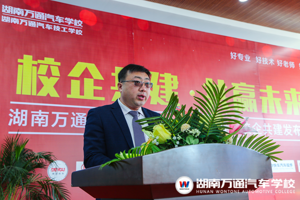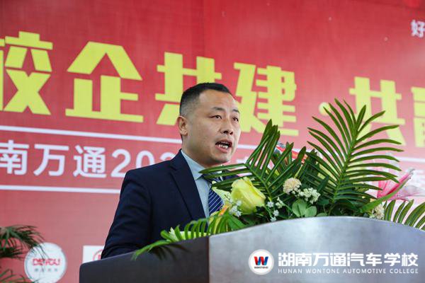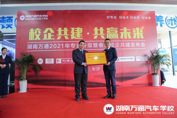 湖南萬通更以此次發(fā)布會(huì)為契機(jī),多渠道強(qiáng)力推進(jìn)校企合作。會(huì)上湖南萬通汽車學(xué)校校長(zhǎng)潘太煌為多家優(yōu)質(zhì)企業(yè)進(jìn)行了授牌,達(dá)成校企共建共識(shí),為學(xué)生搭建了畢業(yè)即就業(yè)快車道。潘校長(zhǎng)說:“發(fā)展職業(yè)教育事業(yè),要完善職業(yè)教育和培訓(xùn)體系深化產(chǎn)教融合、校企合作。踐行職業(yè)教育就是就業(yè)教育的使命,我們有責(zé)任,有義務(wù)去為國(guó)家培育優(yōu)秀的職業(yè)技能復(fù)合型人才,推動(dòng)我國(guó)經(jīng)濟(jì)的發(fā)展。”