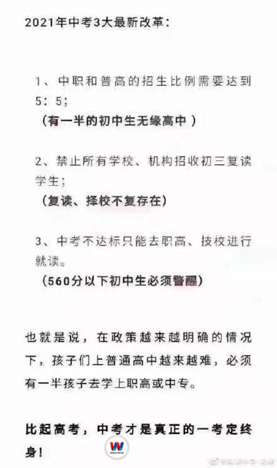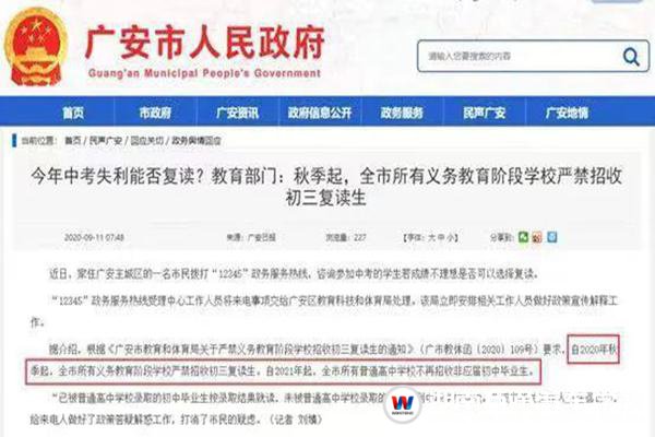 當(dāng)然,有人會說:今年沒考好,那就復(fù)讀一年,明年再戰(zhàn)!可現(xiàn)實(shí)卻是:復(fù)讀?不行,不允許!2019年,寶雞市、廣安市等全國多地教育局就下發(fā)緊急通知,要求全市所有公、民辦初中學(xué)校、普通高中、校外培訓(xùn)機(jī)構(gòu)嚴(yán)禁招收初三復(fù)讀生。