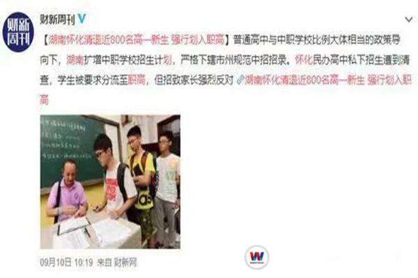 上民辦?清退!在復(fù)讀、擇校這兩條路都被堵死之后,還有人想到去民辦高中,只要能參加高考就行唄。可現(xiàn)實(shí)情況依然是:你想得美。就在今年9月,開學(xué)沒幾天,湖南懷化就清退了近1000名高一新生,并強(qiáng)行分流到職高就讀!至于原因,懷化市教育局給得很直接:民辦高中違規(guī)招錄低于普高最低錄取分?jǐn)?shù)線的學(xué)生?,F(xiàn)在再上職業(yè)學(xué)校,專業(yè)名額都滿了,選擇空間更局限,可如果堅(jiān)持普高,孩子就沒有學(xué)籍……
