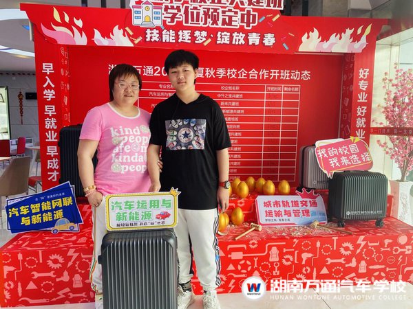 因為很喜歡汽車,彭宇杰從網(wǎng)上了解到湖南萬通后,決定這個五一和爸爸媽媽一起來學(xué)校考察,在參觀完學(xué)校后,彭媽媽很滿意,非常支持宇杰的決定。彭宇杰說:“雖然現(xiàn)在初三還在讀,但是考慮到自己的成績和以后的發(fā)展,還是決定提前來擇校,也能早點拿到名企共建班名額,汽車一直是我喜歡的,湖南萬通也很不錯!”