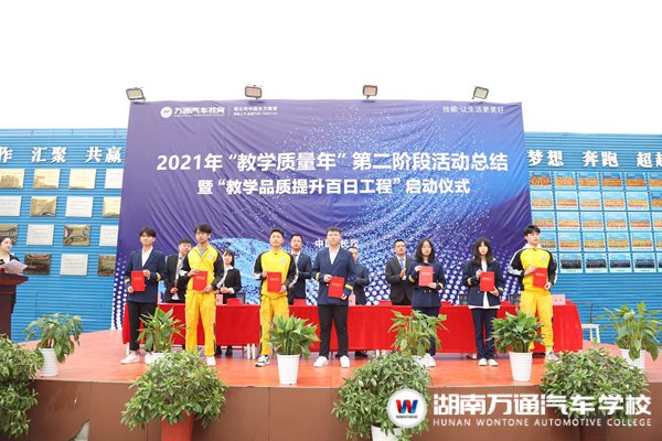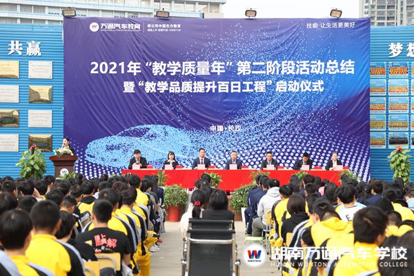 以質(zhì)立校,用心辦學(xué),是湖南萬(wàn)通辦學(xué)以來(lái)的宗旨之一。10月18日,湖南萬(wàn)通汽車學(xué)校舉行了2021年“教學(xué)質(zhì)量年”第二階段活動(dòng)總結(jié)暨“教學(xué)品質(zhì)提升百日工程”啟動(dòng)儀式。學(xué)校校長(zhǎng)助理張助、考試考證中心主任、教務(wù)處、學(xué)生處、創(chuàng)就業(yè)指導(dǎo)中心等學(xué)校領(lǐng)導(dǎo),以全體學(xué)生共同參與了本次儀式。