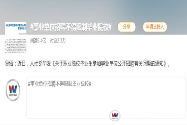 《通知》要求,事業(yè)單位公開(kāi)招聘要樹(shù)立正確的選人用人理念,破除唯名校、唯學(xué)歷的用人導(dǎo)向,切實(shí)維護(hù)、保障職業(yè)院校(含技工院校,下同)畢業(yè)生參加事業(yè)單位公開(kāi)招聘的合法權(quán)益和平等競(jìng)爭(zhēng)機(jī)會(huì)。