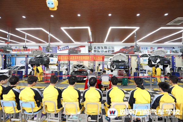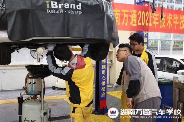 為檢驗(yàn)學(xué)子們階段性學(xué)習(xí)成果,11月3日,湖南萬通2021年技術(shù)牛汽車技能爭霸賽之“雙人快保”在汽車維修實(shí)訓(xùn)中心如火如荼的舉行。