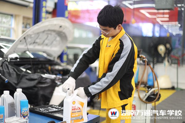 比賽現(xiàn)場,同學(xué)們以默契的雙人配合、沉著應(yīng)對,充分展示扎實(shí)的實(shí)操能力和團(tuán)隊(duì)精神,對啟動(dòng)車輛檢查、拆發(fā)動(dòng)機(jī)底護(hù)板、更換機(jī)濾、加機(jī)油等操作自如,盡顯湖南萬通學(xué)子的專業(yè)素養(yǎng),也讓評委老師們陣陣贊嘆。